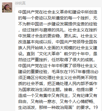 党支部各党员在群里积极发表学习心得。郑钰莹同志提出要杜绝个人专断和个人崇拜,通过制度和法律进行约束,保持党的先进性。宋俊龙同志提出为了避免重蹈社会主义建设过程中出现的错误,我们党必须坚定不移地坚持实事求是的思想路线。罗思敏同志提出虽然国家在社会主义建设过程中遭受过严重挫折,但社会主义建设仍然取得了很大成就。